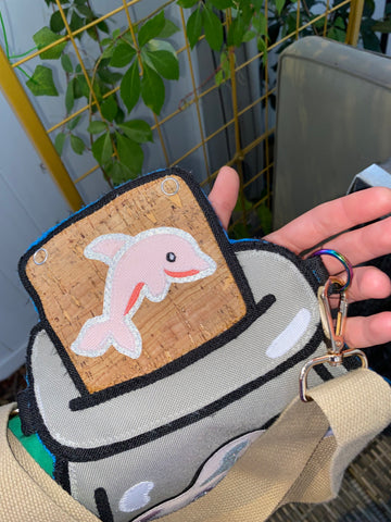 •Features a removable crossbody strap, glimmering specialty fabrics, iridescent hardware, & more.